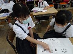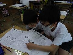↓ペアでの話し合いも、さっと集中してできます。根拠を指さしながら、そこから考えたことを話しています。