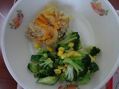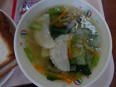 ラピオリとは、イタリアのパスタ料理のことで、うすくのばしたパスタ生地に具を挟んだものです。今日はおしゃれなイタリアン料理でした。魚のマリネは、「さわら」を油でカリッと揚げてありました。玉ねぎや人参もトッピングされおしゃれなマリネ料理でした。サラダは、ブロッコリーとコーンの色合いがとてもよかったです。