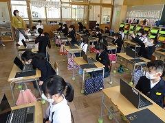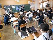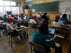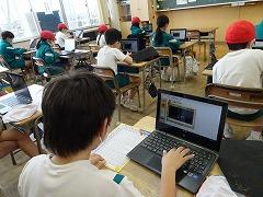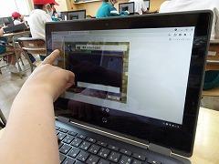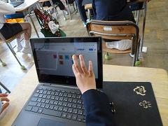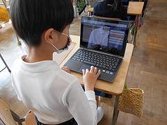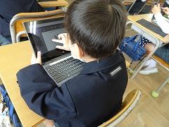 ↓1年生もクロームブックを使いました。パソコンサポーターの先生に教えていただき、画面が変わるたびに、「わあー!」と感動しながら操作をしていました。