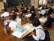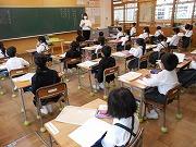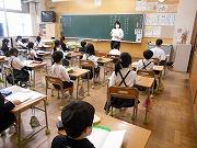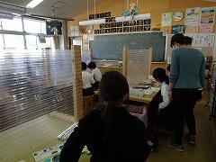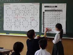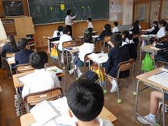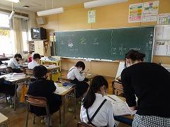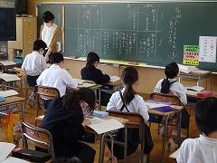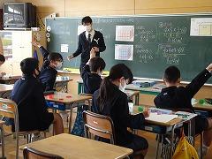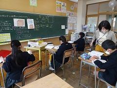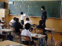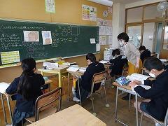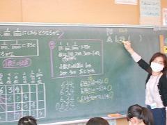 ↓5年生の少人数算数です。1学級を2つのグループに分け、2人の指導者できめ細かに指導していきます。指導内容は同じです。人数を少なくすることで、より分かりやすく指導していきます。