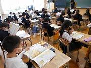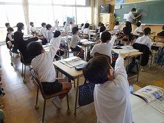 ↓5の1 同じく道徳 「のび太に学ぼう」の教材文を使った授業です。自分の素直な考えを話しながら、思いを交流していきました。