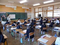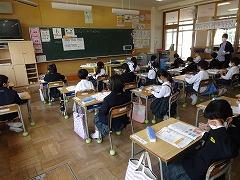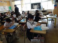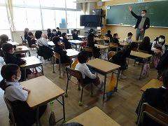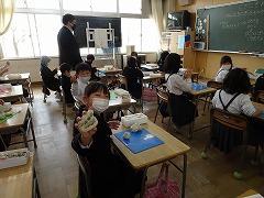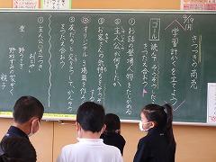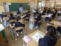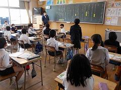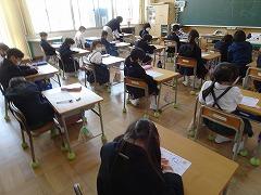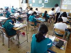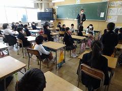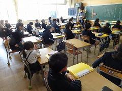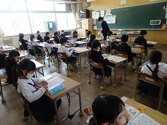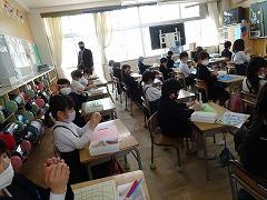↓4の1 国語の時間に校長室にやってきました。大事なことを考えながら聞く学習で「聞き取りメモを工夫する」学習です。テーマを4年生からもらい、そのテーマについて私が話しました。テーマは「学校の歴史」と「校長先生の仕事」です。聞き取ったことをメモに取り、メモを基に相手グループに話の大事なことを伝えます。2グループに分かれてやってきました。真剣に一生懸命メモを取っていましたので、きっと上手に伝えることができたと思います。