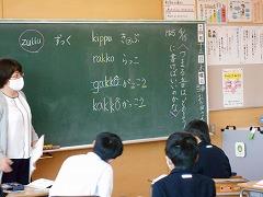 ↓3の1 ローマ字練習です。つまる音を書く時は、次に来る子音のはじめの文字を重ねて書き表すことを、自分の言葉で説明できました。みんながしっかり聞いてくれるので、一生懸命話せます。