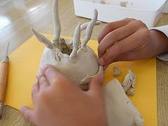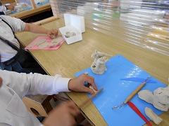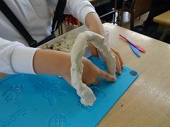 ↓3年図工 粘土で思い思いの作品に取り組みました。
