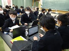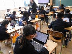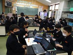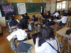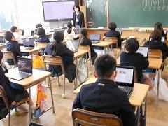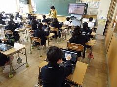 ↓6年 英語科 自分の好きなことを担任の先生に教えてあげるために、英語でカードを書いています。今回はクロームブックでカードづくりです。出来上がりが楽しみです。