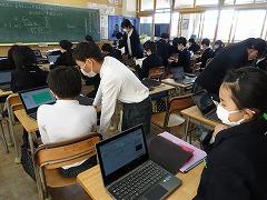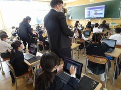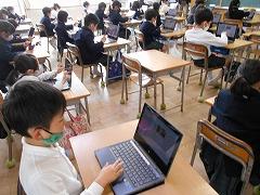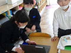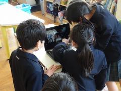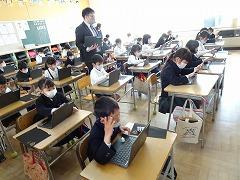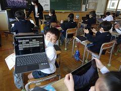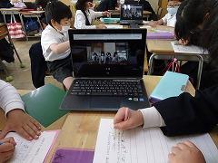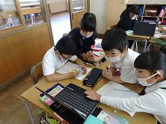 ↑それから、クロームブックで写真の撮影の仕方を教わりました。一人一人が写真を自由に撮ることができますので、自分の春見つけをして、友達と交流するのがわくわくしますね。