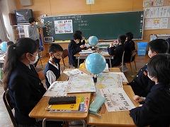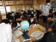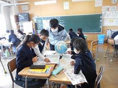 ↓5の3 社会 世界地図や地球儀を用いて、日本と同じ緯度や経度の国を見つけました。地球儀や世界地図では、緯度と経度があるので、世界中の場所を表すことができるのですね。