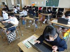 ↓4年生 朝学習で、ローマ字打ちの練習です。とにかくローマ字打ちに慣れていきましょう。