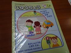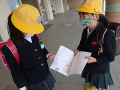 ↑1年生は、止まって、左右を見て、車が来たら待って、ふざけず歩くことができました。これからずっと続けてください。自転車に乗るときも、大人になって車を運転するときも、この3つの約束は守らなければならない交通安全のルールです。続けて、身に付けてください。最後に、警察の方からお土産の交通安全の自由帳をいただきました。ありがとうございました。