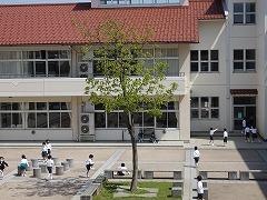 ↓中庭では、トチノ木の周りで仲良く遊んでいます。