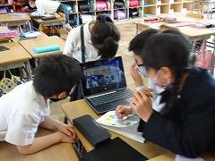 ↓4年生 総合的な学習 中条公園で見つけた生き物をさらに、クロームブックで詳しく調べました。一人一台PCが自由に使えるので、すぐに調べることができます。