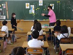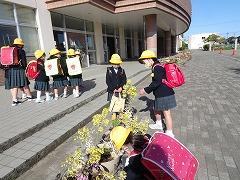 ↓遠くから元気な声であいさつをしてくれて、とてもうれしくなりました。午後から、中条公園へ生き物調査に出かけるそうです。礼儀正しい挨拶もとても素敵です。