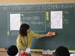 ↓6年算数少人数 3つのグループに分かれてきめ細かな指導を行っています。今日は点対称な図形にはどんな性質があるか調べました。