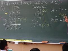 ↓4の1 算数 3桁×3桁のひっ算の仕方を考えました。間違えは宝物、どうして間違えたのかみんなで考えました。