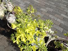 ↓葉ボタンはキャベツのようでしたが、花が咲いたら、これまたキャベツの花のようです。花を見るとアブラナ科なのが分かりますね。菜の花ととても似ています。