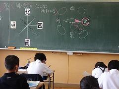 ↓3の3 社会 学校の周りにどんな建物があるか調べるために東西南北を確認しました。