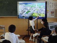↓3年 社会 ドローンで撮影された条南小校区の映像を見て、学校の周りにはどんな建物や施設があるか確認しました。東西南北を意識しながら学校の周りの特徴をつかんでいきました。