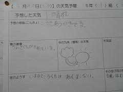 ↓ 5年生がクロームブックで天気図や雲の動きを見て、今週末の天気を予想しました。「晴」や「曇りのち晴」の予報が多かったです。的中するかな?