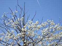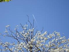 ↑ヤマボウシの白い花が美しく咲き始めました。藤の花はさわやかに風に揺れています。
