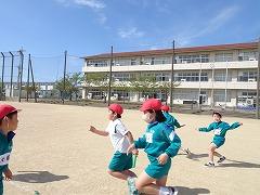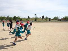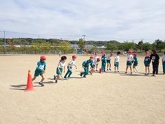 ↑4の2 体育 青空の下、チームでリレーをして思いっきり走りました。