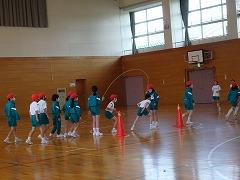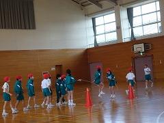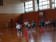 ↑4の3 体育 スポチャレに挑戦!力を出し合って八の字跳びをしました。声を出し合ったのでタイミングよく跳べました。