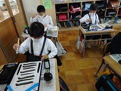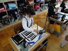 ↓3年生から毛筆がスタートします。始筆、送筆、終筆の練習です。