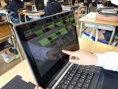 ↑2年生 デジタル教科書を見ながら、新しい漢字を覚えました。