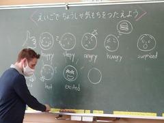 ↓2年 外国語活動 1年生、2年生は年間10時間外国語活動を行い、外国語に慣れ親しみます。今日は英語で、体の調子や気持ちを伝える言い方に慣れ親しみました。これは、「疲れた」の表現です。「tired」動きもつけながら練習しました。