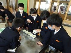 ↓5年生 家庭科 家族団らん お茶の入れ方の学習です。緑茶を入れました。お茶を飲むときは、アルコール消毒をして、黙って、一方方向を向いて飲みました。学校では団らんはできませんでしたが、ご家庭でお子さんにお茶を入れてもらって、団らんをしてください。疲れが一瞬でなくなりますよ。