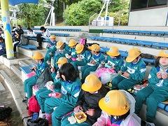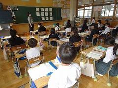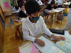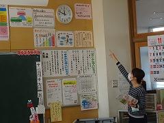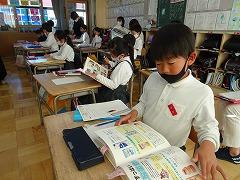 ↓1年 教室では11月の朝の歌を口ずさんでいます。いつも素敵な歌詞とメロディーの今月の歌です。今月の歌が終わると、音楽委員会さんがコメントしてくれます。そのコメントに「ありがとうございます」と返す1年生、高学年のお姉さん、お兄さんもやりがいがあります。
