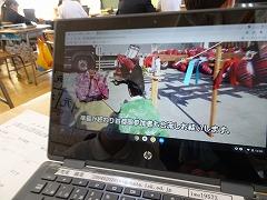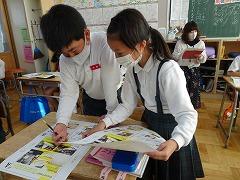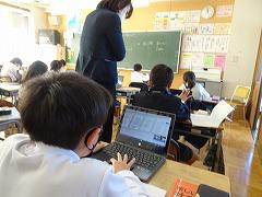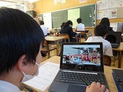 ↓3の3 総合的な学習 祭りについて調べたことを新聞にまとめていきます。今日はクロームブックでモデルの新聞を見て、新聞の書き方を学びました。