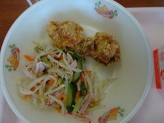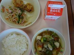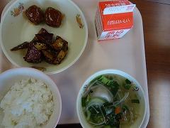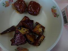 ↓今日の給食です。野菜たっぷりいろいろ肉団子、水餃子、そして五郎島金時の大学芋です。大学芋のたれは、お手製で、水、砂糖、しょうゆで作ったそうです。とろーりとしていて、本当においしかったです。子供たちも大喜びでいただいていました。ご家庭のおやつにおすすめの一品です。