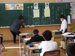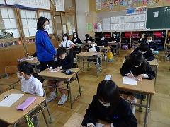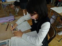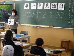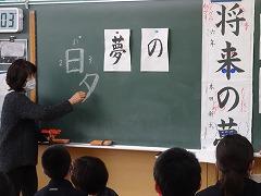 ↑日展作家の高桑先生に今日は2年生が教えていただきました。ひらがなもつながりを意識してのびのびと書きましょう。鉛筆を正しく持つことが、字が上達する肝心なところです。今日から鉛筆の正しい持ち方を意識して慣れていきましょう。