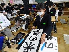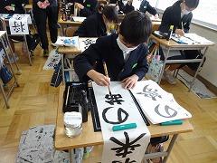 ↓今日は書道の先生に6年生が教えていただきました。ひらがなは漢字からできたので、もとの漢字を意識することで運筆が滑らかになります。漢字の太さの違いも教えていただきました。意識して書いいました。