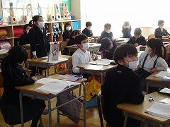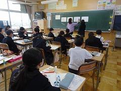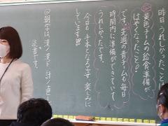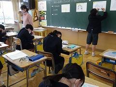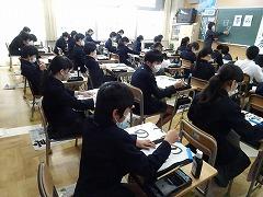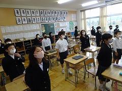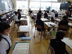↑2年 道徳 校歌に込められた願いを聞いて、この学校でどのように過ごしていきたいか考えを交流しました。元気な声で、力を出し合って、学びを積み上げていきましょう。