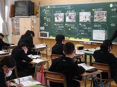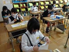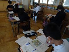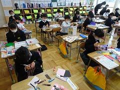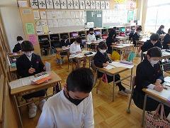 ↓国語 枕草子の「冬はつとめて」の古典の文にならって、自分が感じる冬のよさ文章に書いて、友達の考えと交流しています。私も聞かせていただきましたが、子供たちのしなやかな感性に感動しました。