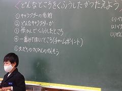 ↑3年 「話す・聞く」学習です。司会を立てて、記録係や時計係などの役割を決めての話し合いの仕方を学んでいます。今後学級会や、いろいろな話し合いの時に役立つ大切な学習です。