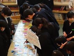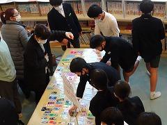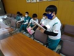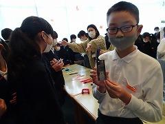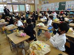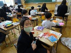 ↓読書賞として、図書ボランティアさんが手作りしおりをプレゼントしてくださいました。子供たちが喜んで本を読んでくれるようにと、愛情たっぷりの手作りしおりです。秋ごろから集まって作ってくださったそうです。今日は4年~6年生です。