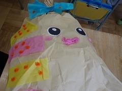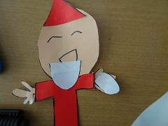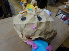 ↓2の1 図画工作 くしゃくしゃぎゅっ 紙をくしゃくしゃにして、ぎゅっとくくって、自分だけのお気に入りキャラクターと作りました。今日は鑑賞会を開きました。工夫したところ、いいなあと思ったところ、クラスみんなで拍手をしてたたえ合いました。