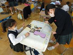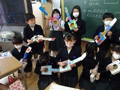 ↓2の2 生活科 1年生が楽しめるおもちゃランドを作り、1年生を招待しました。景品もあるようです。お兄さん、お姉さんらしく、おもちゃの遊び方の説明を上手にしていました。