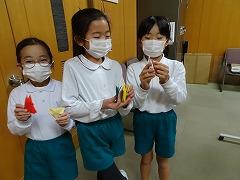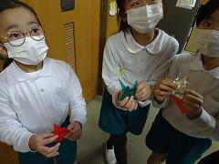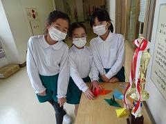 ↓羽ばたく折り鶴を作ってくれました。夢を翼に乗せて、大きく羽ばたいてください。飾ってくれてありがとう。