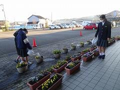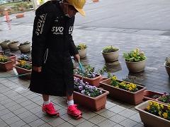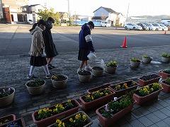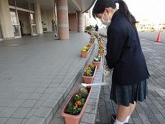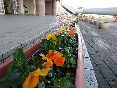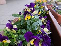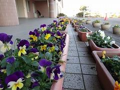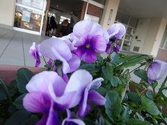 ↑寒さの中、パンジーやビオラは花を咲かせいます。花を眺めて心を和ませてください。みんなのために、お世話をありがとう。