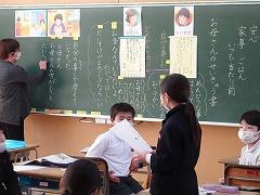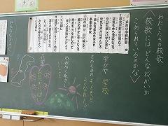 ↑2年生 道徳 「校歌に込められた思い」の教材文を読んで、校歌に込められた願いを知って、どんなことを思ったか話し合いました。校歌には、元気な声で、力を出し合って、毎日の成長を積み上げて行ってほしい、夢をかなえるために、毎日楽しく学んでほしいとの願いが込められています。話し合った願いを心に込めて、みんなで校歌を歌いました。とてもすばらしい歌声でした。