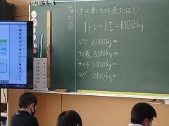 ↑3年算数 重さの学習をしています。大きな重さ、1トン=1000kgであることを学びました。