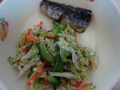 ↑今日は冬至献立です。いよいよ1年で一番昼の長さが短い日となります。冬至の日にかぼちゃを食べゆず湯に入ると、1年健康に過ごせると言われています。かぼちゃはそぼろ煮の中に入っていて、かぼちゃと共に、鶏肉、いんげん、玉ねぎ、こんにゃくなども一緒にいただきました。みんな完食でした!ゆずは白菜漬けの中に入っていて、香りを楽しむことができました。メバルは生姜オイルに漬け込まれ、こちらも香り高く、サクッといただきました。とてもおいしい冬至献立でした。ごちそうさまでした。