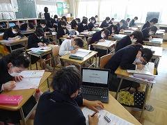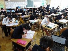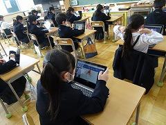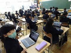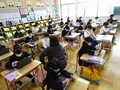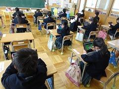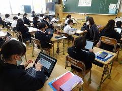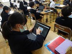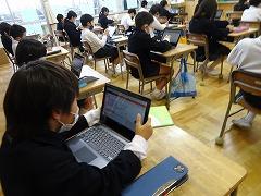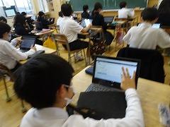 ↓朝学習には学校中、静かに取り組んでいます。クロームブックを使っての基礎基本問題に挑戦です。