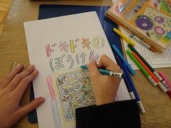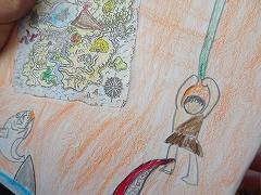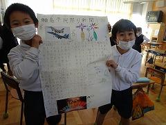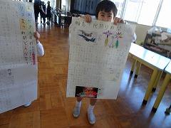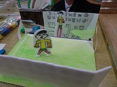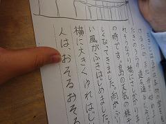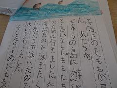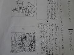↓3年が書いた物語が完成し、見せてくれました。たくさんの文章を起承転結の構成を考えて、楽しそうに書いました。うれしく思いました。