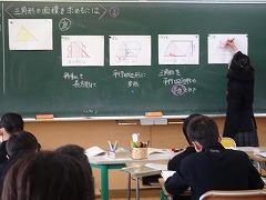 ↓5年算数少人数 三角形の面積は、どのようにして求めることができるかな これまで習った公式を用いるために、三角形の形を変形させています。