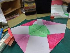 ↓5年生 図工 ミラクル ミラーステージ 鏡があるので、ミラクルに変化します。鏡の面白さを生かそうと試行錯誤していました。