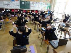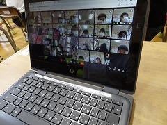 ↓オンライン授業がいつでもできるように、「オンライン朝の会」をして「オンライン」の練習をしています。